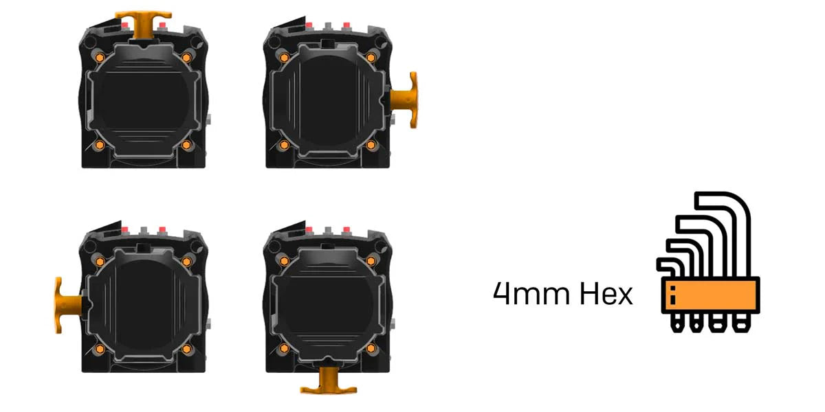 - 90º Rotatable clutch housing design for easy access