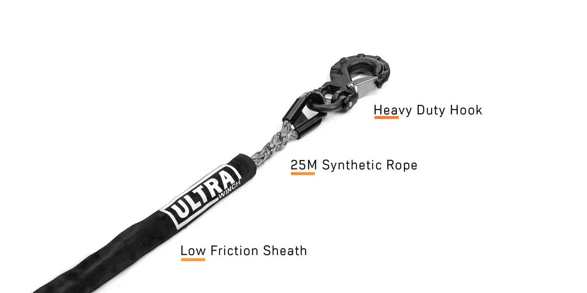 - Light Weight - Winch 21.4kg with synthetic rope only. With Control box & Wiring, 25.2 kg fitted. Note MK4 has a slight mass increase due to Ultra Heavy Duty 50mm2 wiring to adequately handle high current - beware of undersized wiring.