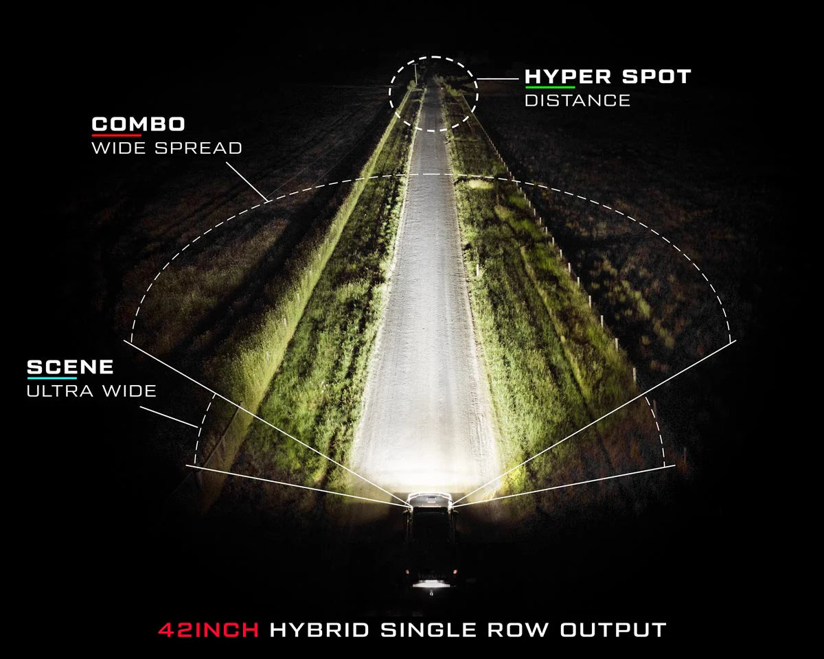 While previously you would need to choose a light bar for one type of road and be left in the dark on others, we have taken the unconventional route to provide a light bar that provides optimal performance across all roads. Equipped with 3 different reflectors providing driving light distance, a wide throw of flood and a hyper flood that you would normally only get from our work lights, the Hybrid is designed to light up every angle.