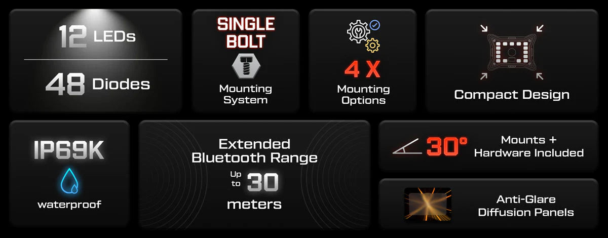 Versatile Pack Options: Available in 6 and 8-pack configurations, these Bluetooth-controlled LED rock lights offer flexibility to suit different installation needs.