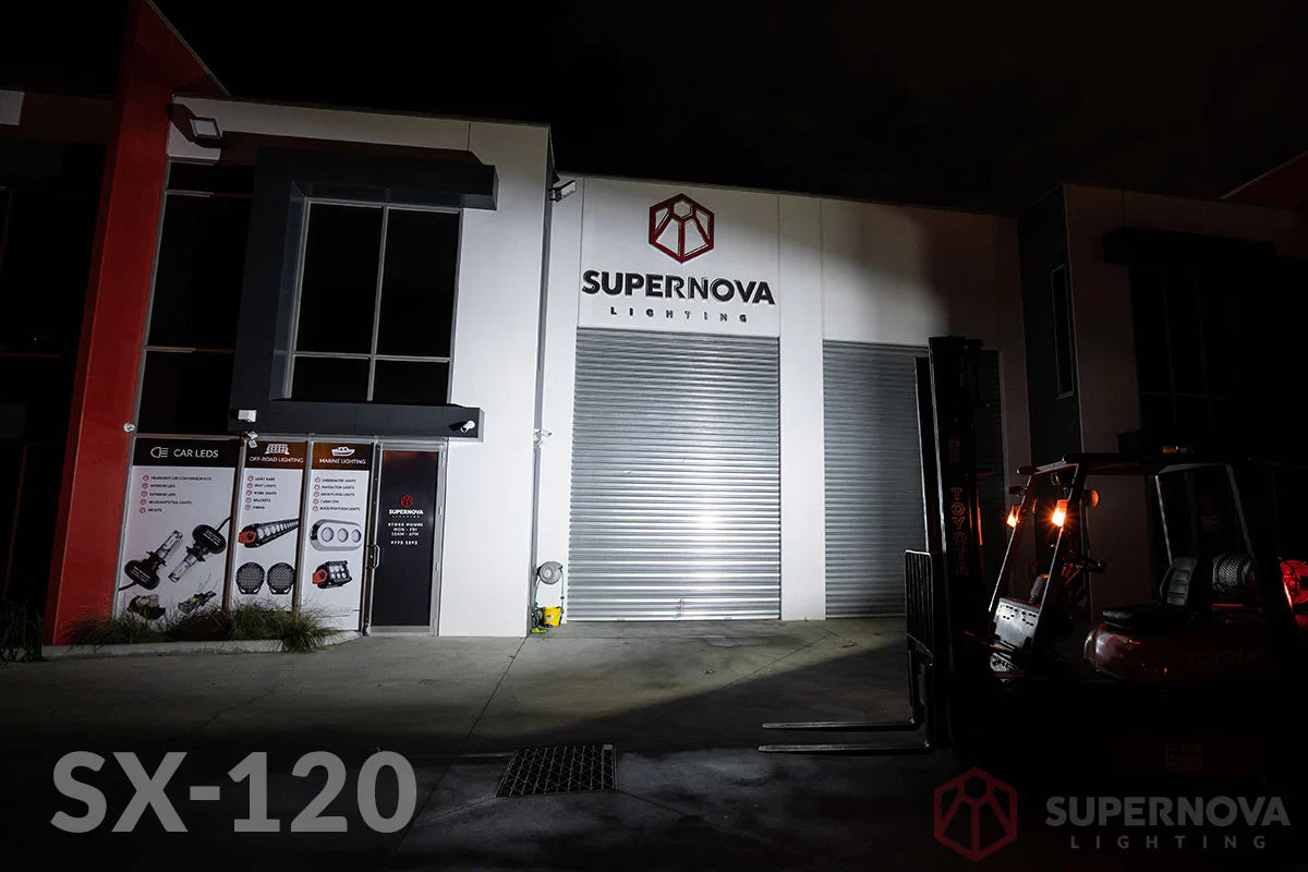 Born from the popular DNA of our Scene 120º and Parallax work lights, the SX120 brings an unbelievably wide scene flood with compact sizing and a life time guarantee composition.