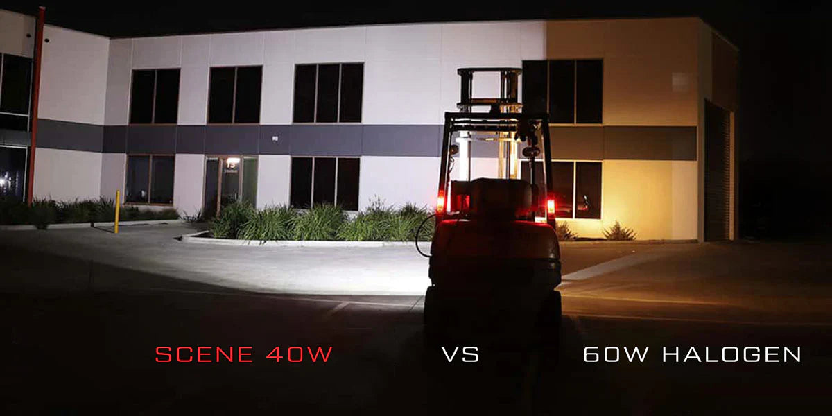 Most LED work lights consist of a mini driving light beam, a relative flood output with a short distance spot. The Scene 40 provides a ultra wide flood without bright or dead spot compromise. A game changer for those working in the darkest conditions.